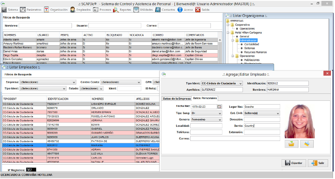 • Definición ilimitada de cargos y tipos de empleados